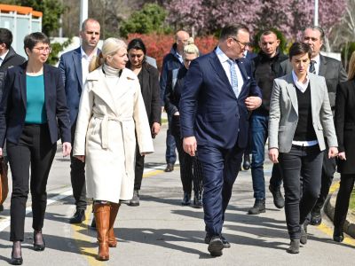 Министарка науке, технолошког развоја и иновација др Јелена Беговић обишла је у Вршцу заједно са председницом Владе Републике Србије Аном Брнабић компанију Хемофарм и упознала се са производњом иновативног лека Corpos