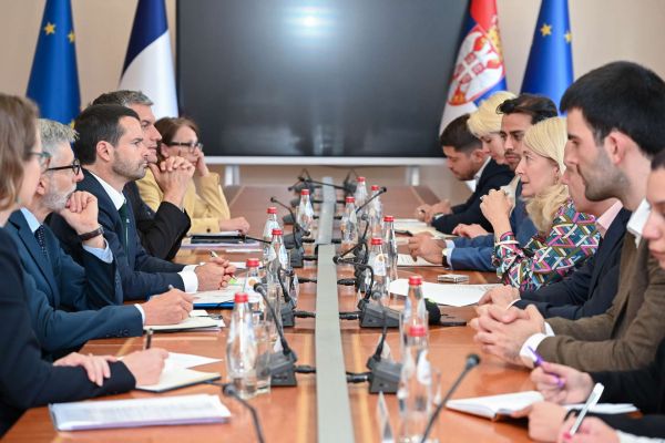 Ministarka nauke, tehnološkog razvoja i inovacija dr Jelena Begović sastala se sa predstavnicima ovog ministarstva i predstavnicima Vlade Republike Srbije sa ambasadorom Republike Francuske u Srbiji Nj.E. Pjerom Košarom, kao i visokom delegacijom razvojne agencije Expertise France, predvođenom Žeremijem Peleom, generalnim direktorom ove agencije.