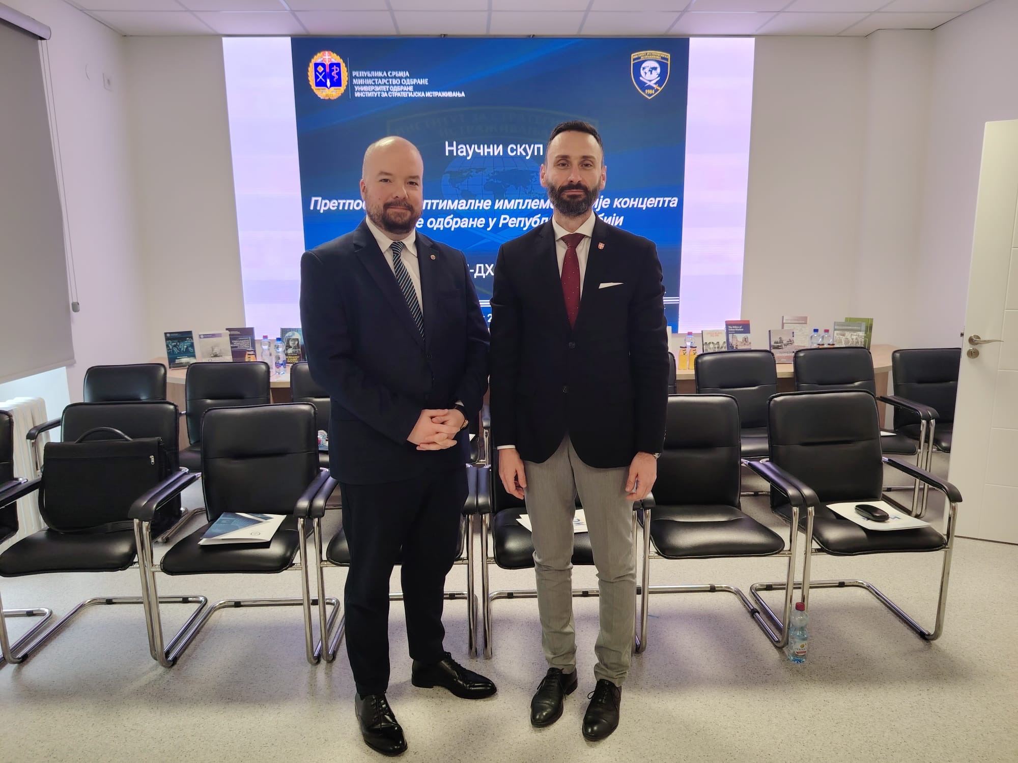 Posebni savetnik i vršilac dužnosti šefa kabineta ministra Sava Stambolić i posebni savetnik ministra dr Ivica Đalović prisustvovali su 19. marta naučnom skupu u okviru naučnoistraživačkog projekta „Pretpostavke optimalne implementacije koncepta totalne odbrane u Republici Srbiji“, koji se realizuje na Institutu za strategijska istraživanja.