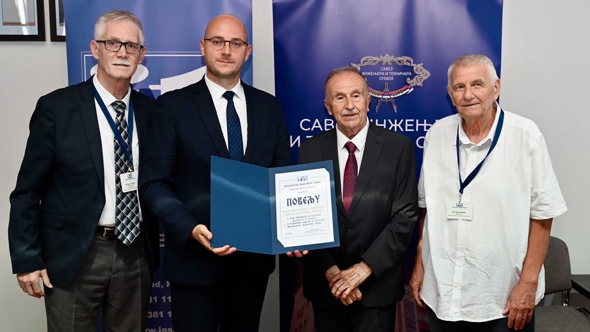 Ministarstvu nauke, tehnološkog razvoja i inovacija dodeljena je Povelja Inženjerske akademije Srbije, na svečanosti povodom obeležavanja 25 godina postojanja i rada Inženjerske akademije Srbije, održanoj u Domu inženjera „Nikola Tesla”