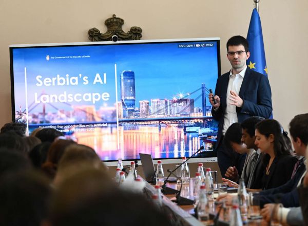 Studenti su prilikom posete Vladi Republike Srbije imali priliku da čuju detalje o BIO4 Kampusu koji je prezentovao direktor Tima za IT i preduzetništvo u Kabinetu predsednika Vlade Republike Srbije Nenad Paunović, ali i o tokovima razvoja veštačke inteligencije u našoj zemlji, koje im je približio savetnik u Vladi Republike Srbije Stefan Badža.