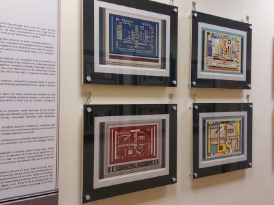 „U okviru ovog projekta koji je finansirala Ambasada Sjedinjenih Američkih Država u Srbiji smo se pored razvoja savremenih digitalnih nastavnih platformi bavili i različitim aspektima i primenama generativne veštačke inteligencije. Grafike na izložbi su nastale kao rezultat primene različitih softverskih paketa baziranih na veštačkoj inteligenciji u dobijanju vizuelnih podataka koje sam ja potom uobličio na takav nain da pomoću njih mogu objasniti proces sticanja znanja o realnosti putem obrade informacija, manipulacije simbolima i konstrukcijom narativa. Na taj način sam kroz grafički prikaz prezentovao koncept tehnologije i tehnike, koji pored svoje svakodnevne upotrebne vrednosti predstavljaju i određeni okvir kroz koji mi sagledavamo i dajemo značenje svetu oko nas.“