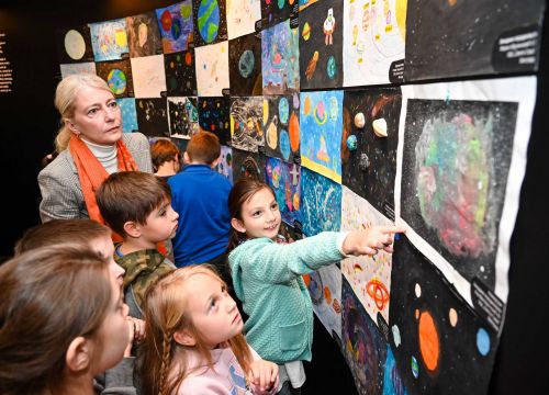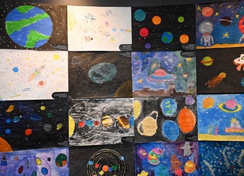 Za ovu priliku izložene su astrofotografije, načinjene teleskopom iz Astronomske stanice Vidojevica koje su snimili astronomi, profesionalci u istraživanju noćnog neba i sklopili ih u jedinstvenu kombinaciju naučnih čuda i umetničke lepote neba. One nisu samo vizuelno zadivljujuće, već i duboko naučno značajne, beležeći trenutke astronomskih pojava koje ostavljaju bez daha. Putovanje kroz beskrajne prostore svemira nastavlja se kroz crteže učenika od drugog razreda OŠ Sveti Sava iz Beograda, kao i dece uzrasta od prvog do četvrtog razreda OŠ Milić Rakić Mirko iz Prokuplja, koji su pod utiscima razgovora sa svojim nastavnicima i obilaska Opservatorije kreirali svoje radove – poglede koji su kolažirani u jedno veliko platno. Koristeći različite likovne tehnike, osnovci su prikazali svoje viđenje dalekih svetova.
