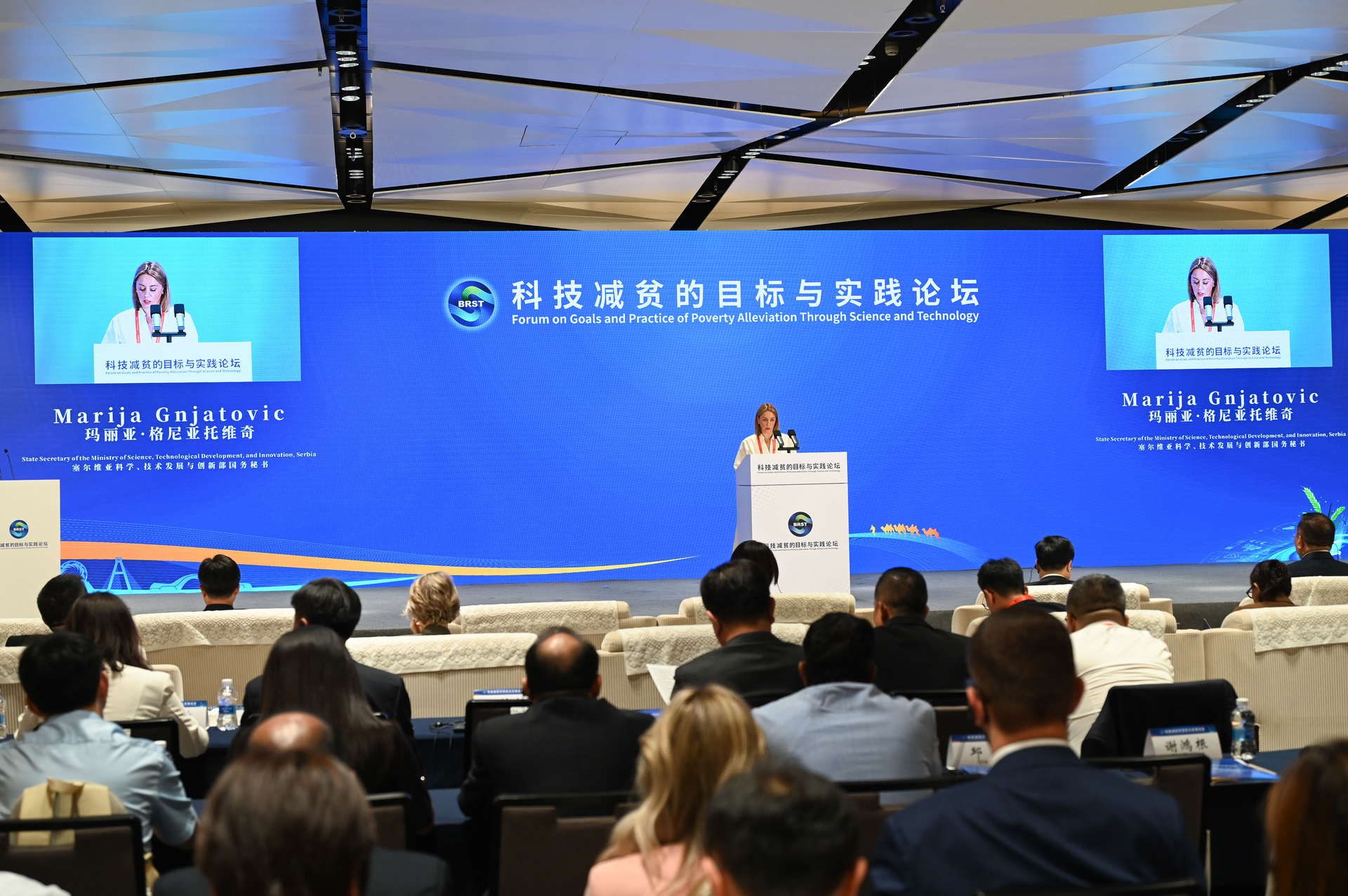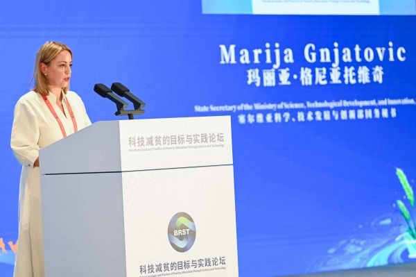 Dr Marija Gnjatović, državna sekretarka u Ministarstvu nauke, tehnološkog razvoja i inovacija Republike Srbije govorila je na Globalnom forumu o ciljevima i praksi smanjenja siromaštva kroz nauku i tehnologiju, koji se održava u Kini kao deo međunarodnog Foruma ,,Pojas i put”
