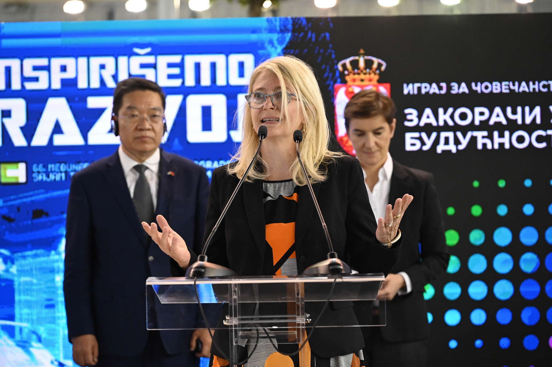 „Svakoga dana tokom trajanja sajma ovde u paviljonu Republike Srbije naši građani moći će da se upoznaju sa novim tehnologijama, inovativnim proizvodima, da razgovaraju sa naučnicima i inovatorima i zaista da vide kako se nauka primenjuje u svakodnevnom životu i kako nauka može da reši mnoge naše svakodnevne izazove sa kojima se suočavamo. U okviru naše postavke prikazani su inovativni proizvodi, ideje, istraživanja koja su nastala u naučno-istraživačkim organizacijama, kreirani od strane naučnika, inženjera i preduzetnika, kako iz Srbije, tako i iz države partnera ovogodišnje postavke - Narodne Republike Kine. Posebna nam je čast što su danas tu sa nama i predstavnici i kolege iz Narodne Republike Kine. Ova saradnja je jasan znak naše otvorenosti ka svetu i želje da zajedničkim snagama radimo na izgradnji održive budućnosti“, rekla je ministarka nauke, tehnološkog razvoja i inovacija dr Jelena Begović.